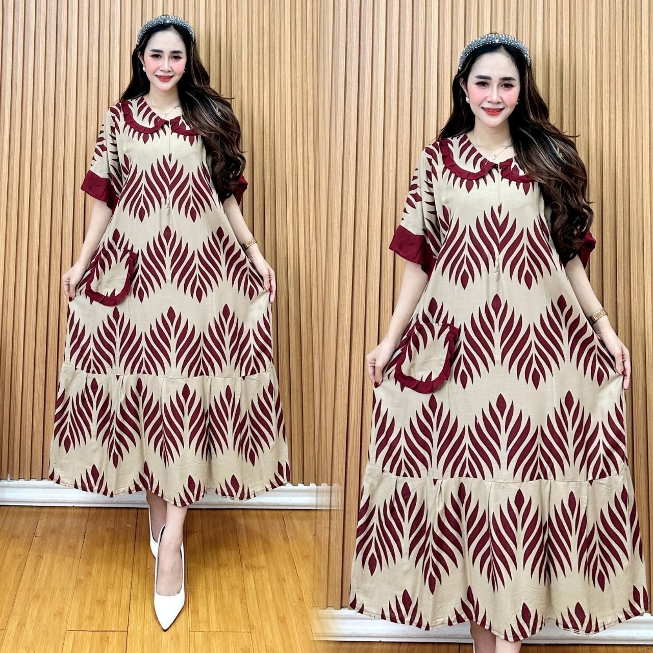 Baju rumahan/homey dress yang enak dilihat dan tidak membosankan. Menggunakan material katun rayon super sehingga nyaman dan adem saat dipakai. Bahan tebal jadi tidak menerawang.