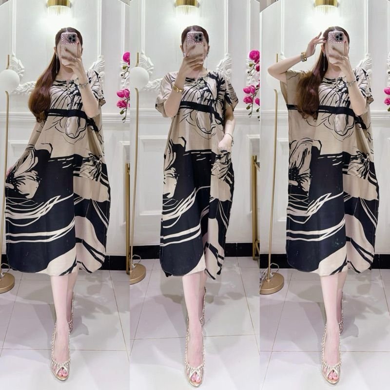 Baju rumahan/homey dress yang enak dilihat dan tidak membosankan. Menggunakan material katun rayon super sehingga nyaman dan adem saat dipakai. Bahan tebal jadi tidak menerawang.